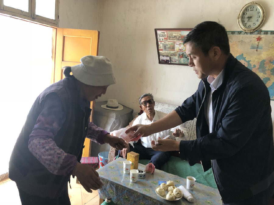 随后,领导班子分别到自己的帮扶户进行走访慰问,为他们送去了一些蔬菜、鸡蛋等生活物品,每到一户都详细询问家庭生产生活情况,倾听困难群众的心声和期盼,与他们一起想办法、出主意,共商脱贫致富办法。同时,积极宣传土地流转政策,鼓励帮扶户树立自力更生、勤劳致富的观念,增强自身发展动力,坚定脱贫致富的信心。