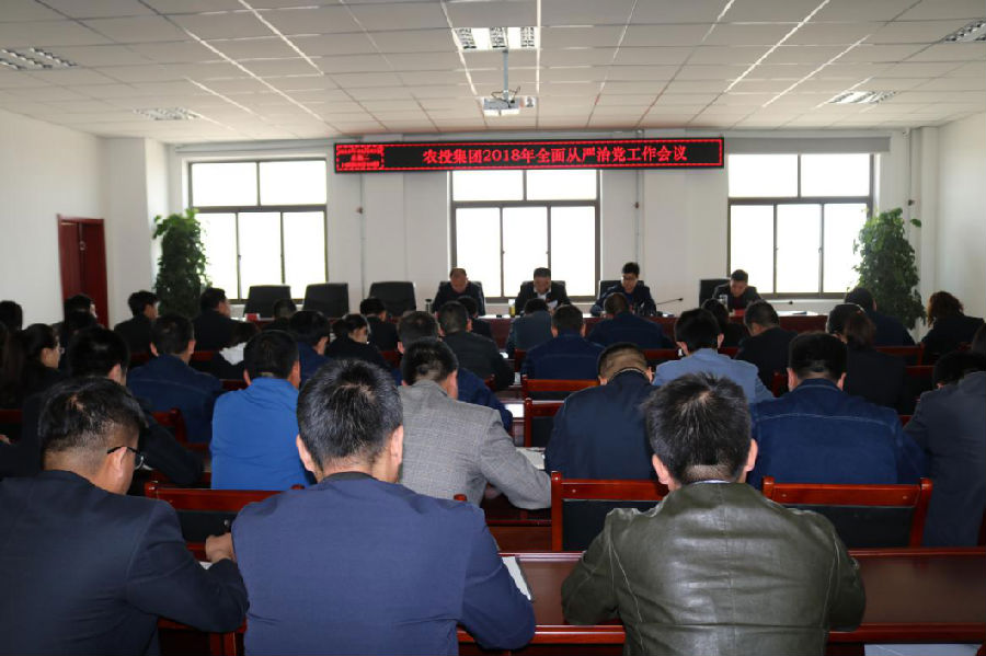 4月3日下午,农投集团召开了2018年全面从严治党工作会议,党委领导班子、机关全体职工、各子公司中层及以上领导干部近100人参加会议,会议由党委委员、副总经理李春才同志主持。