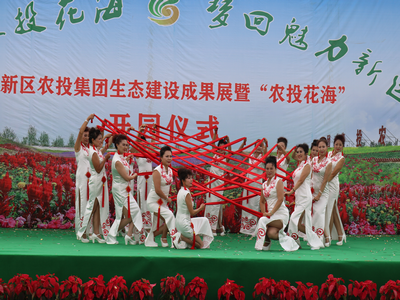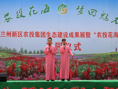 开园仪式上的文艺汇演开始,新区实验小学的孩子们带来的欢快活泼的开场舞《花朵》吸引了在场观众的目光,甘肃省旗袍协会的《百人旗袍秀》表演在舞台和花海周围形成一道靓丽的风景,火凤凰艺术学校的《傣族舞》更是跳出了彩云之南的民族风情,孩子们表演地火热《拉丁舞》点燃了现场观众的激情。文艺汇演亮点多多、好戏连连,农投集团邀请的相声界新势力代表马小跳、陈艺诚带来的精彩相声让大家捧腹大笑。国家一级演员、中国戏剧梅花奖获得者边肖带来的陇剧、秦腔和歌曲表演让所有人感受到了戏剧的魅力。著名相声演员王海带来的以兰州方言为基础的相声表演精彩绝伦,信手拈来的相声包袱让大家拍手称快,掀起一阵高潮。最后,由农投集团中霖公司带来的舞蹈《咏春》优雅婀娜,在观众的阵阵掌声和叫好声中结束了整场表演。开园仪式现场的产品展示和推介会上摆放着农投集团自产的农产品供观众品尝,展示售卖的植物微景观、多肉系列植物、田园风情盆摆、玫瑰花等“农投花卉”也吸引了大批观众围观购买。