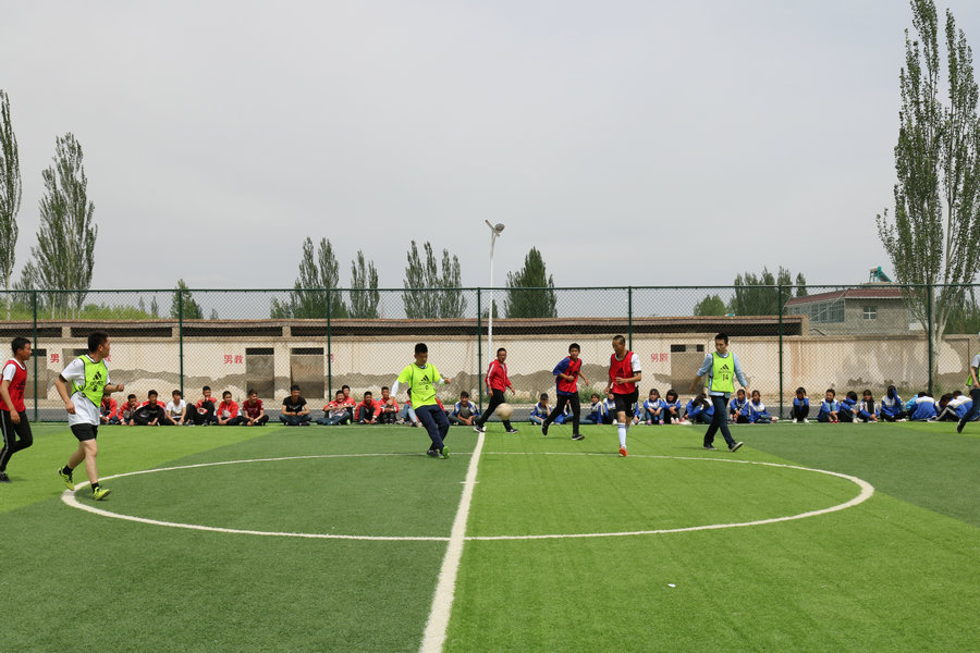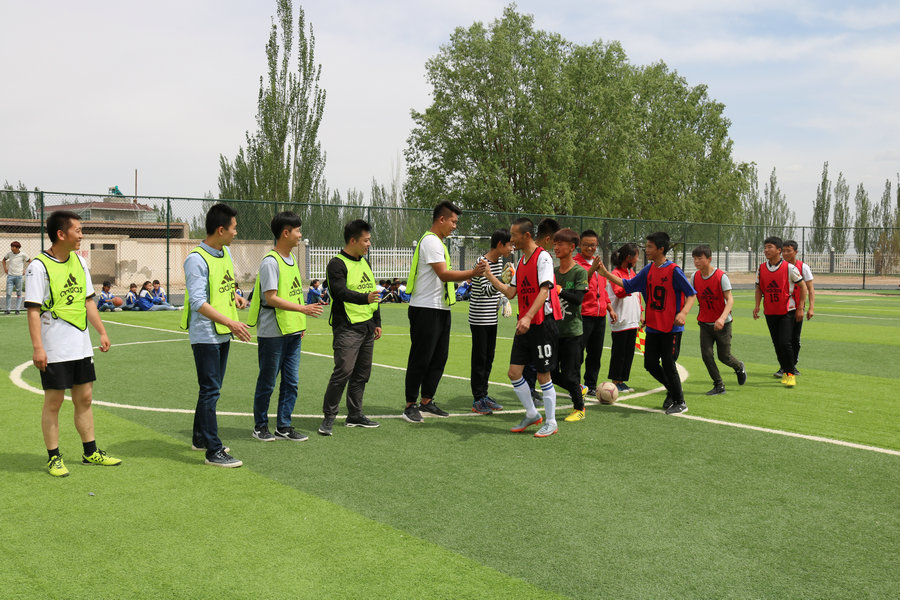 驱车20多公里赶到学校后,农投集团的共青团员们在学校校长张宏老师带领下,与学校留守儿童们进行了简单的交谈。保家窑初级中学是一所非常重视学生体育发展的学校,不论老师还是学生对足球运动都有着浓厚的兴趣,学校的足球校队也是一支团结向上、技巧高超的运动团队。来自集团绿茵公司的足球爱好者魏家旺向孩子们讲解了足球理论知识,让孩子们了解了更多的足球文化。