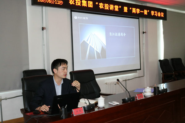 为增强农投集团学习氛围,拓展员工知识面,提高公司融资业务能力,2017年12月7日,新区农投集团特邀请长江证券一行为全体员工进行债券知识培训讲座。长江证券债务业务一部总监付杰、副总经理袁衡及兰州营业部理财经理寇明永出席本次讲座。