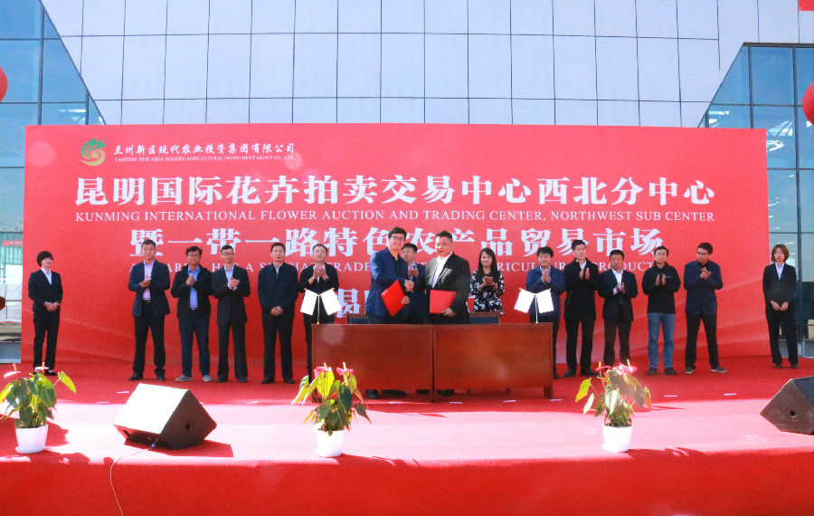 9月27日,昆明国际花卉拍卖交易中心西北分中心暨“一带一路”特色农产品贸易市场签约及揭牌仪式在兰州新区花卉产业基地举行,该中心和市场将利用兰州新区“一带一路”节点城市区位优势,构建全球花卉大流通的格局,以智能化大数据为依托、以花卉交易数据为核心,打造“产业链”、“供应链”、“价值链”三链融合的可持续发展复合花卉生态圈。