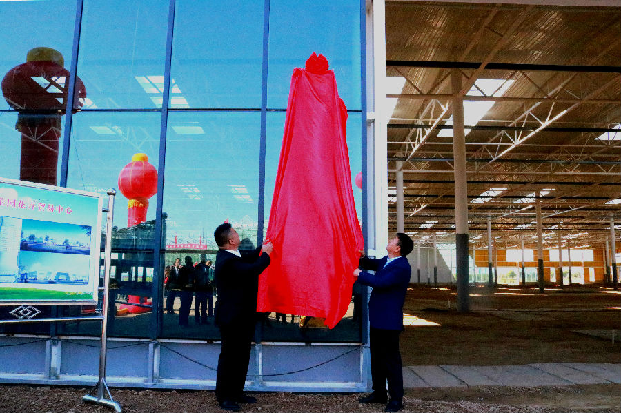 新区管委会副主任王军、昆明国际花卉拍卖交易中心董事长曹荣根共同为兰州新区花卉拍卖交易中心揭牌
