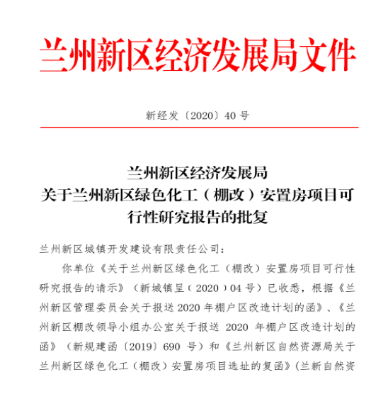 兰州新区绿色化工(棚改)安置房项目 可行性研究报告喜获批复