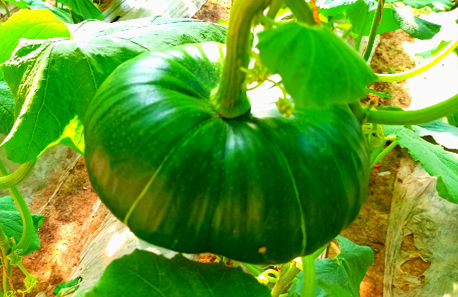 为保障试验成功,根据不同生理时期、气候及环境变化,仔细分析、科学预判病虫害发生情况,变“治”为“防”;严格按照南瓜需肥规律以及土壤养分测定结果科学配方施肥。经过4个月的试验,目前,研究院试种的太空大南瓜已经结果,其中最大挂果直径达750px,重量约10kg,预计至4月初其重量将达百余斤。